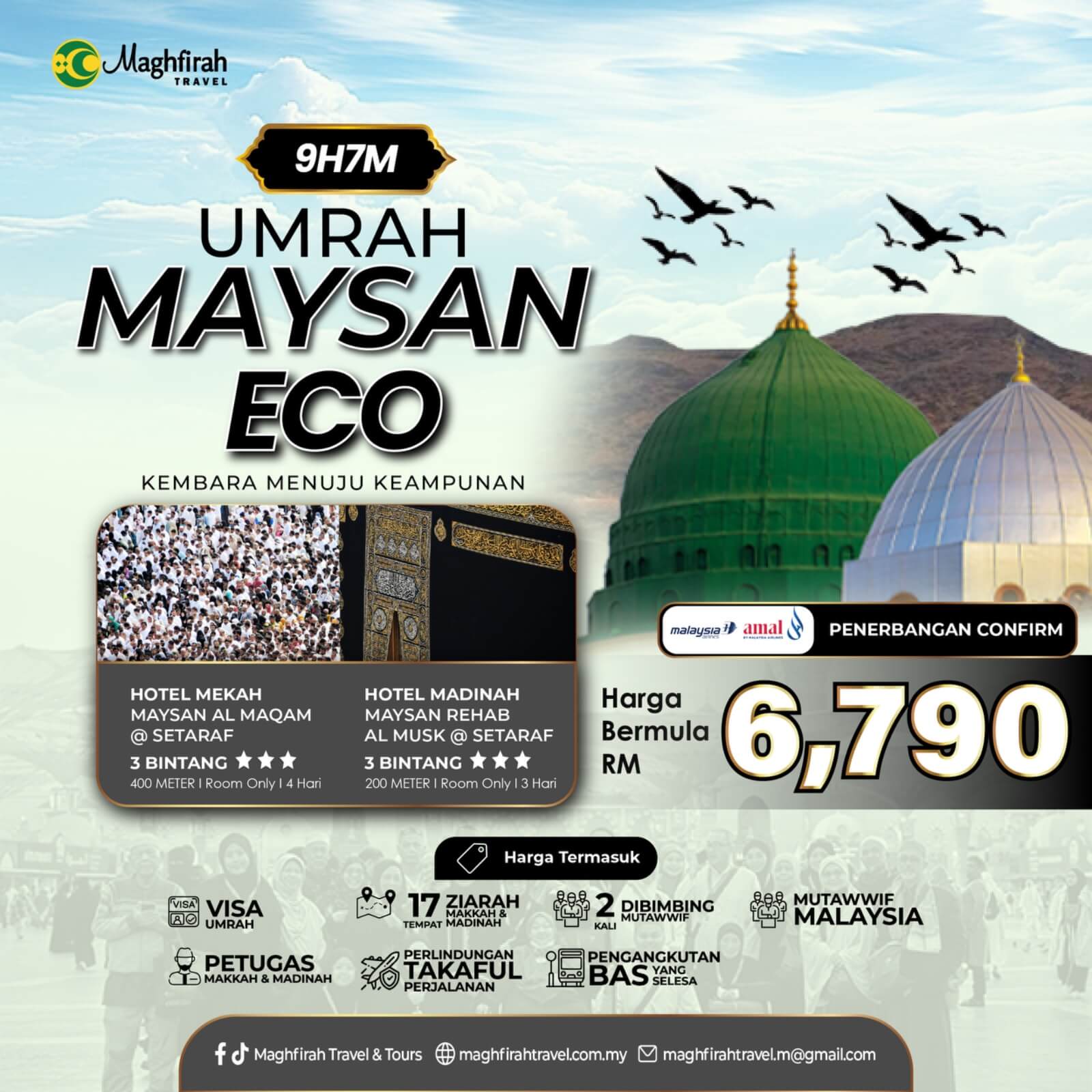 Pakej umrah dari Maghfirah Travel bagi musim 2025 bermula dari RM7890 sahaja.
